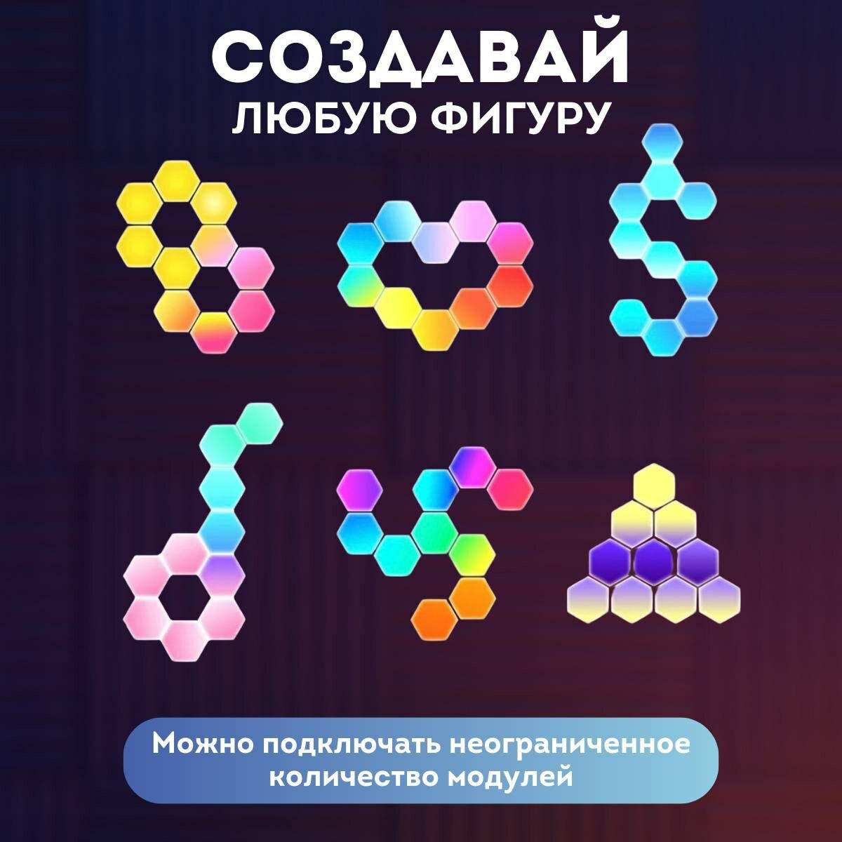Светильник настенный модульный "Шестиугольники (Соты)", 10 модулей. Умная светодиодная панель DIY. RGB лампы