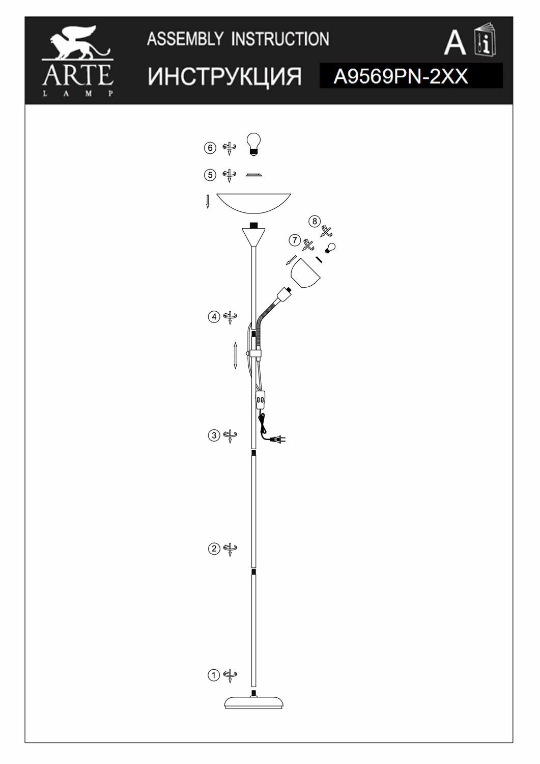 Торшер Arte Lamp DUETTO A9569PN-2AB