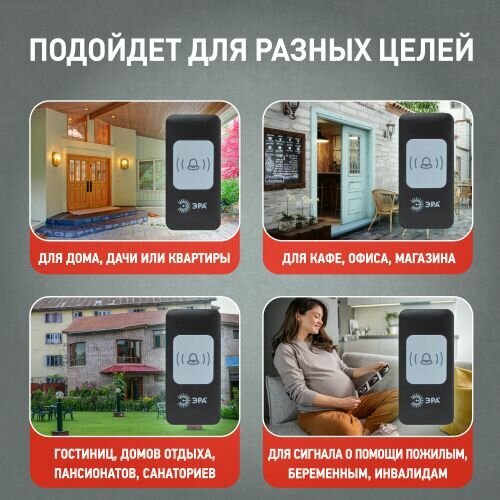 Звонок дверной ЭРА С94 беспроводной, от сети, черный, 52 мелодии интересное: