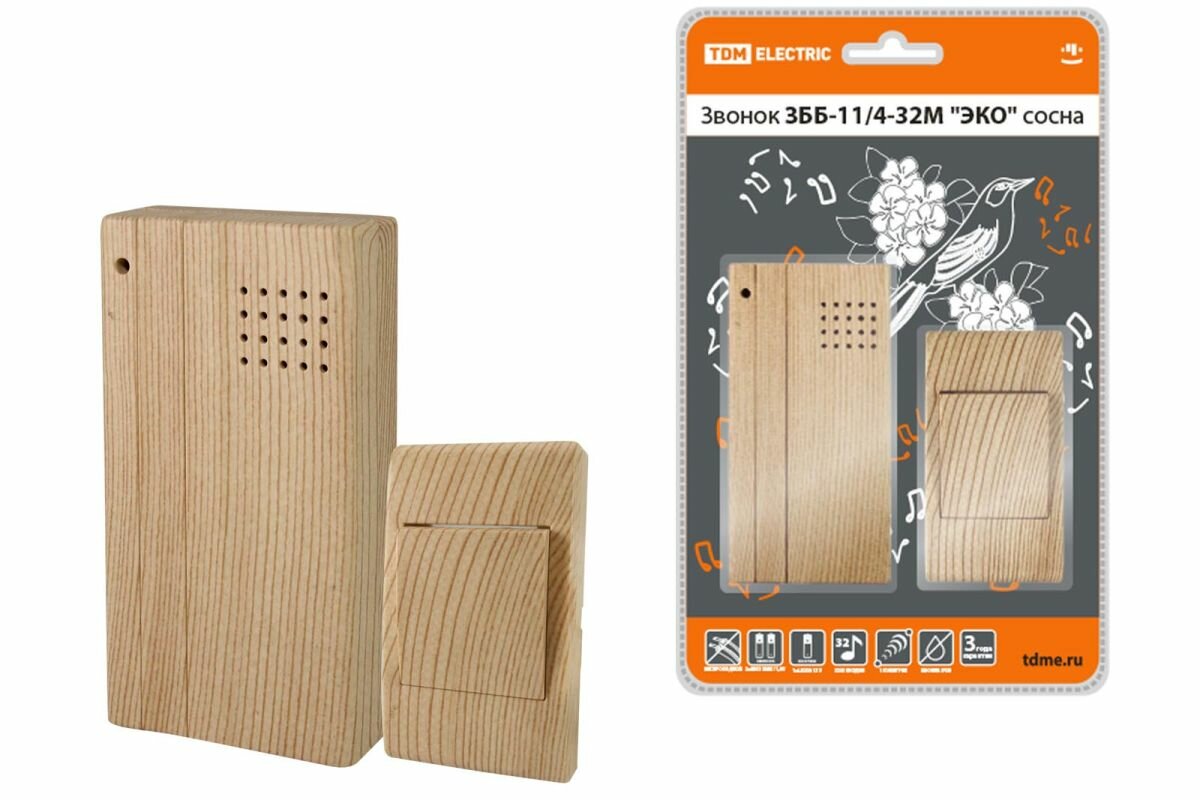 Звонок ЗББ-11/4-32М "ЭКО" сосна (беспр., бат.) TDM