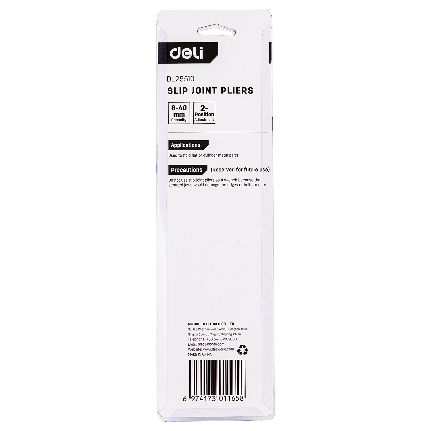 Купить Пассатижи переставные двухдиапазонные 250мм Deli DL25510 (рабочий диапазон 8-40мм)