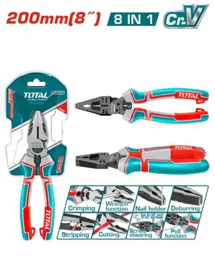 Многофункциональные комбинированные плоскогубцы 8-в-1, 8"/200mm,Cr-V, TOTAL THTMF186