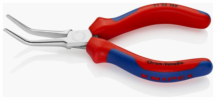 Knipex KN-3125160 Длинногубцы, острые плоские гладкие губки 55 мм 45°, длина 160 мм, хром, 2-комп. ручки
