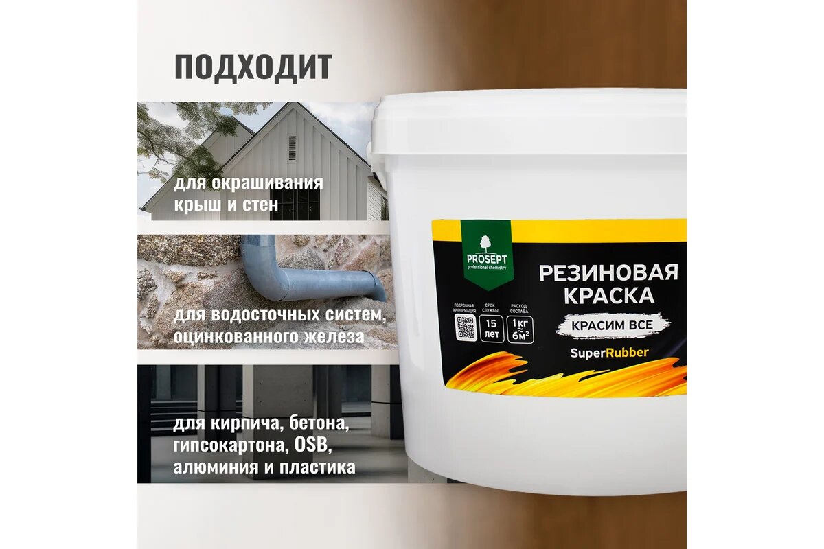 Краска резиновая Prosept SuperRubber (1кг) белый RAL9003