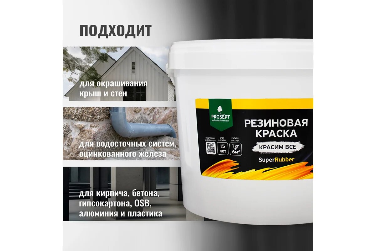 Краска резиновая Prosept SuperRubber (1кг) белый RAL9003