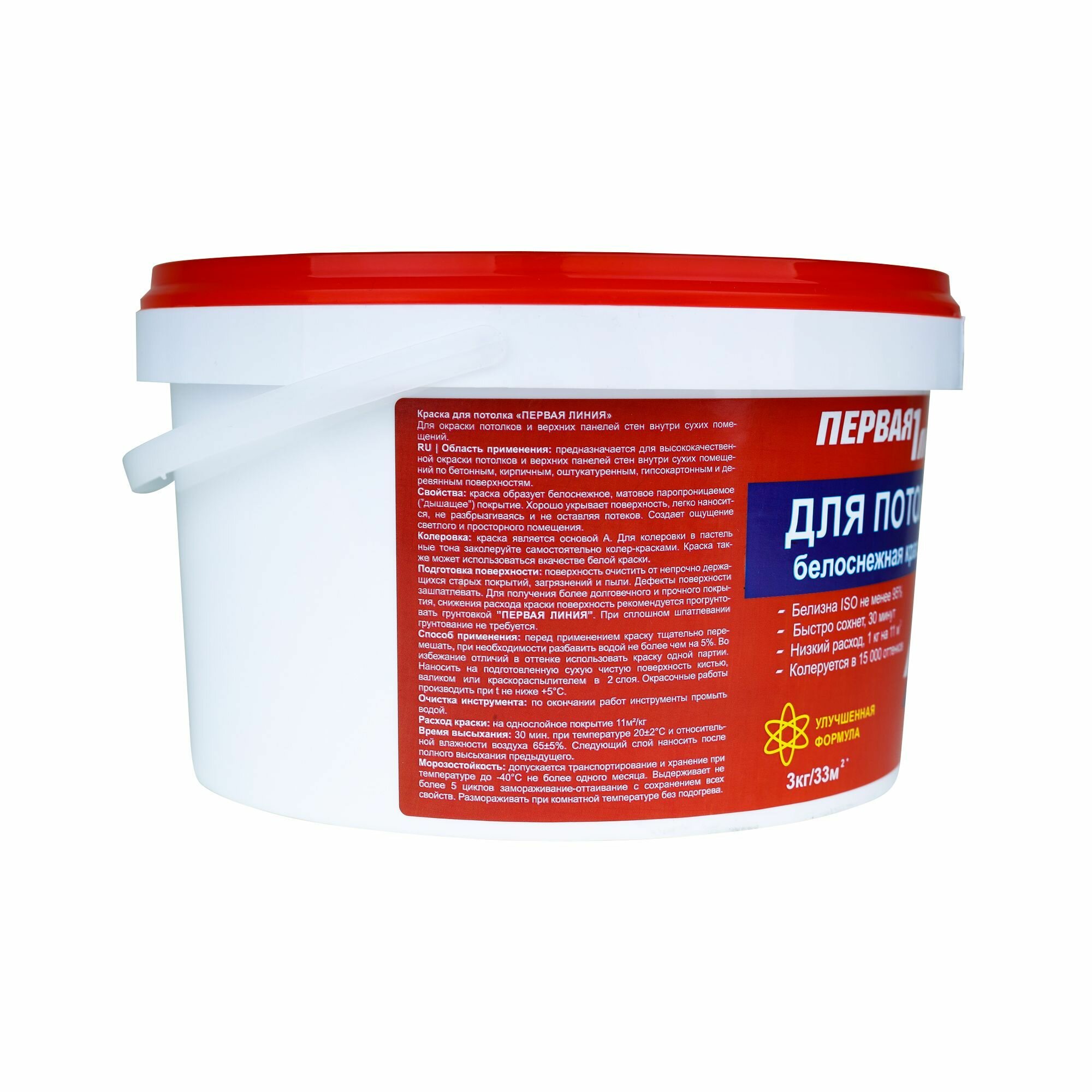 Купить Краска для потолка Первая линия быстросохнущая акриловая белоснежная 3 кг
