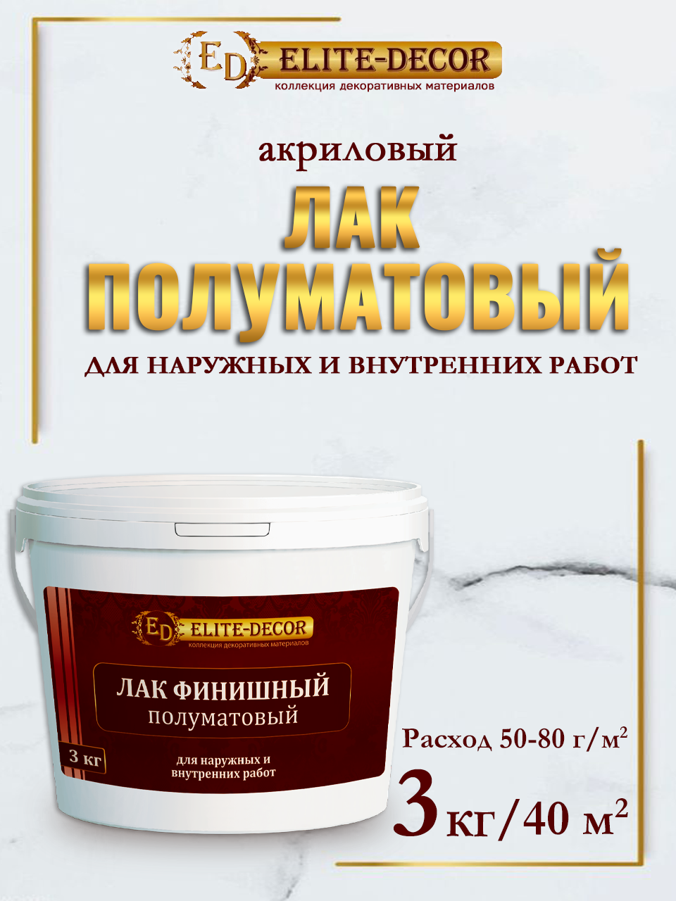 Лак Elite-Decor, сатиновый, полуматовый, прозрачный, для штукатурки, 3кг интересное: