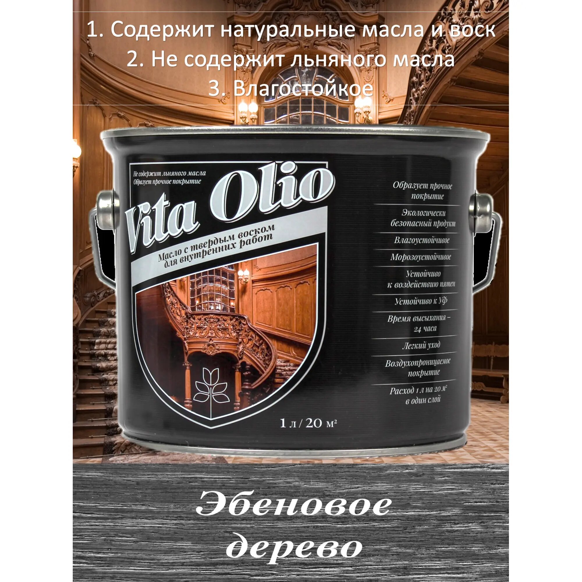 Купить Масло для дерева Vita Olio с твердым воском для внутренних работ Эбеновое дерево 2.5 л