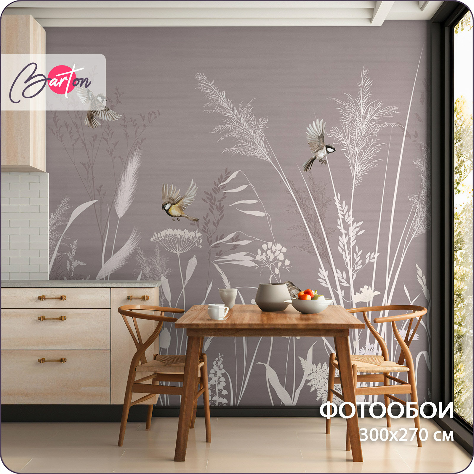 СохранитьФотообои на стену флизелиновые 3d Растения Цветы Птицы 300x270 см Bartonwall N166-BR интересное: