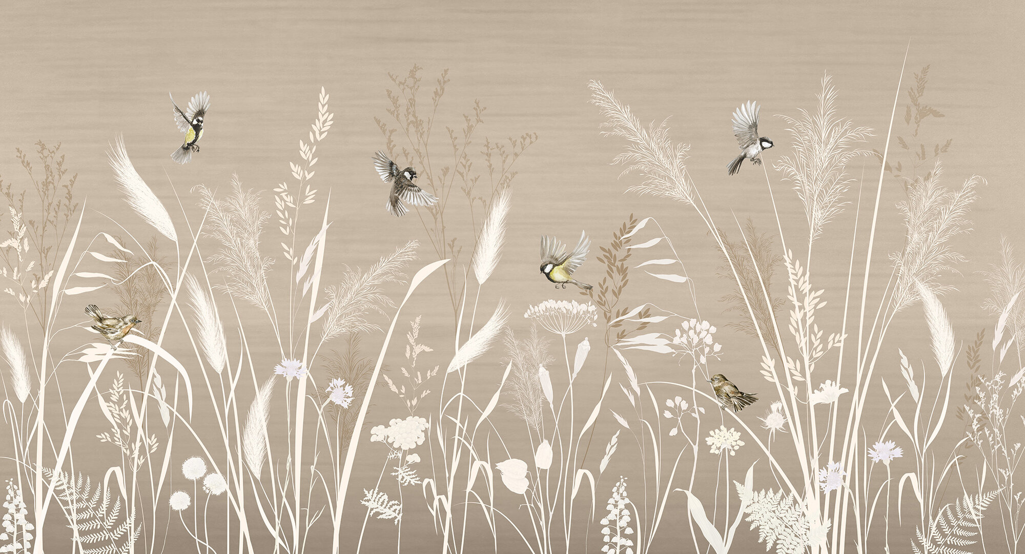 Фотообои на стену флизелиновые 3d Растения Цветы Небо Птицы 400х270 см Bartonwall N163