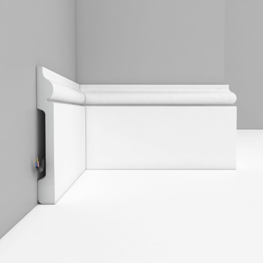 Плинтус дюрополимер напольный DECOMASTER (декомастер), 79х13х2400 мм, D005-114 ДМ белый глянцевый