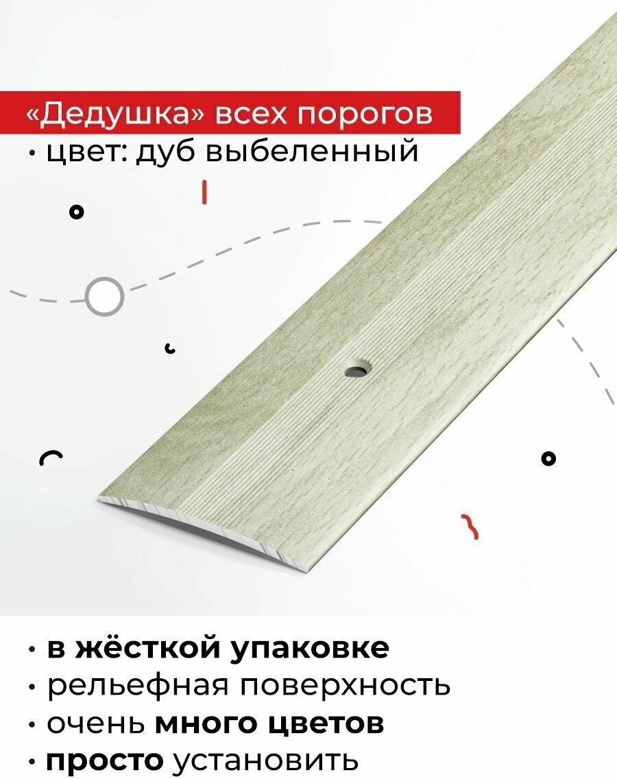 СохранитьПорог одноуровневый Лука ПС-03, 900 x 37 мм, металлический, дуб выбеленный интересное: