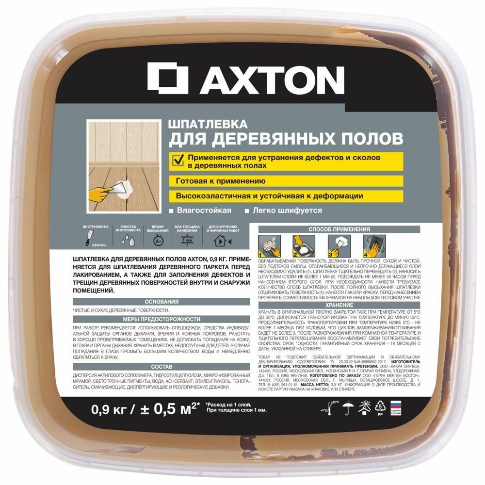 Акстон шпаклёвка для пола тач (0,9кг) / AXTON шпатлёвка для деревянных полов тач (0,9кг)