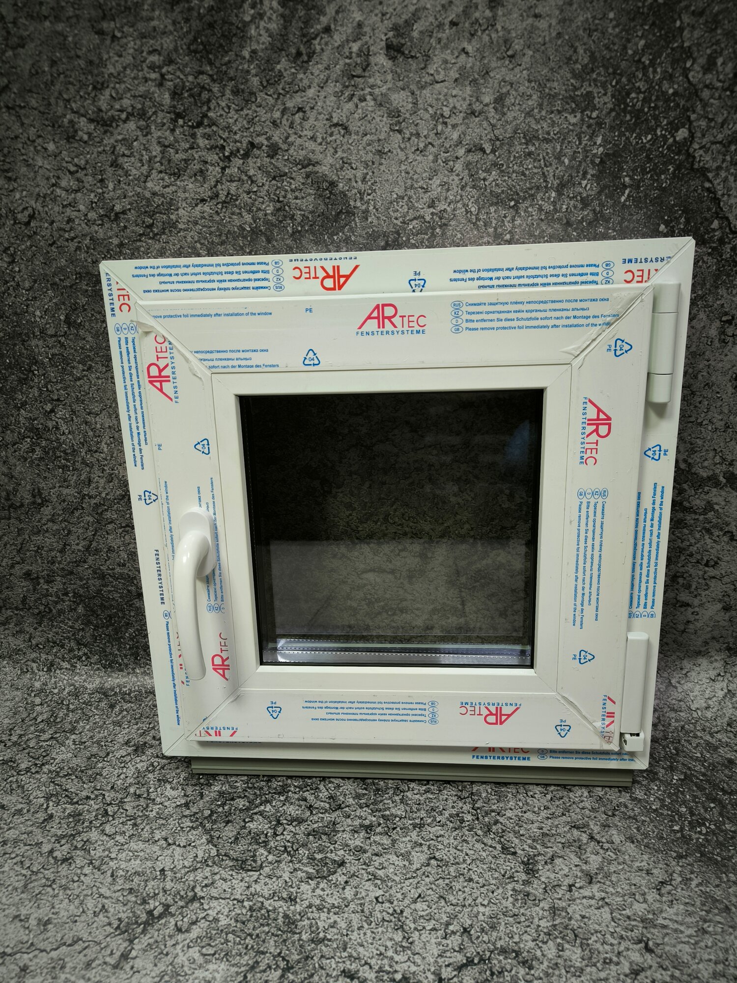 Окно пвх 450*450 открывание вправо, сетка, энергосберегающий стеклопакет. Гребёнка проветривания и монтажные пластины в подарок.