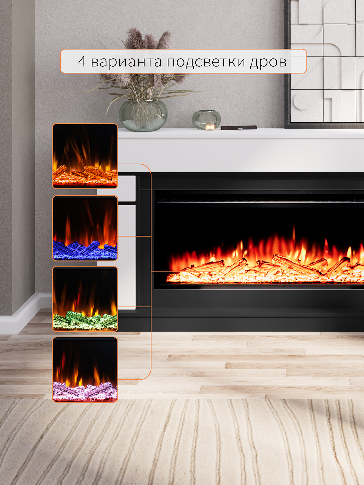 Камин электрический напольный ELEKAM Lines Pulsar 38 с очагом и порталом, с пультом, обогревом и имитацией огня (Электрокамин)