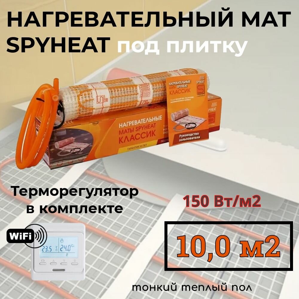 Купить 10,0 м2 Теплый пол (электрический) под плитку нагревательный мат SpyHeat SHMD-8-1500 Вт с программируемым Wi-Fi терморегулятором
