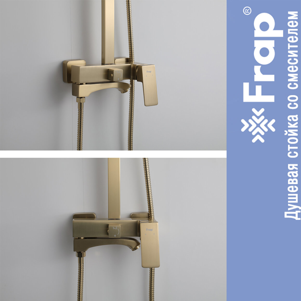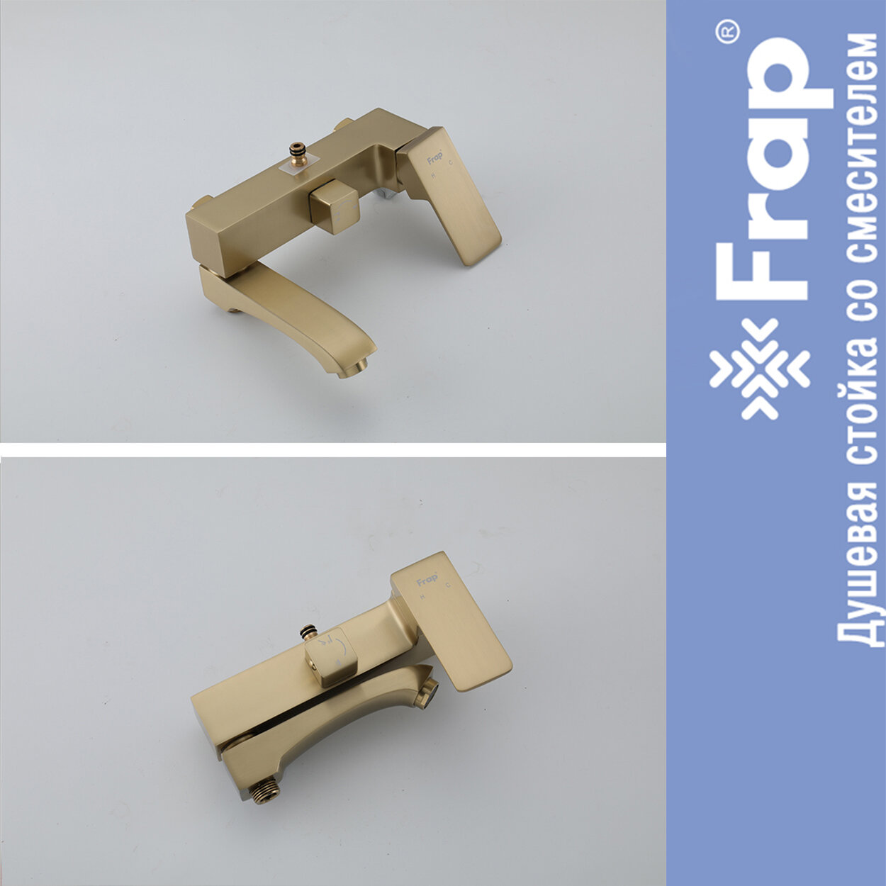 Душевая стойка для ванны FRAP F2476-3 латунь, золотой сатин, управление рычажное