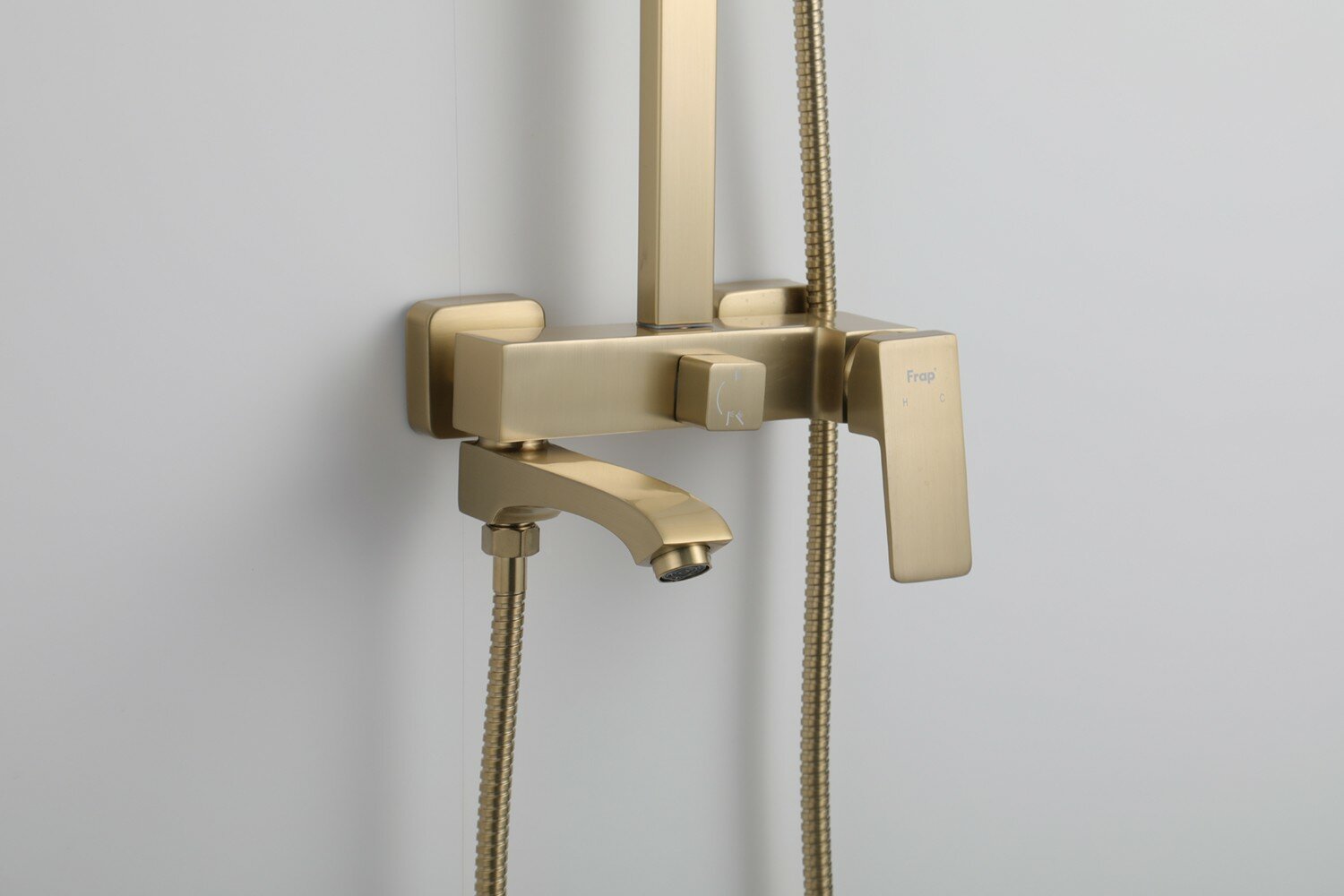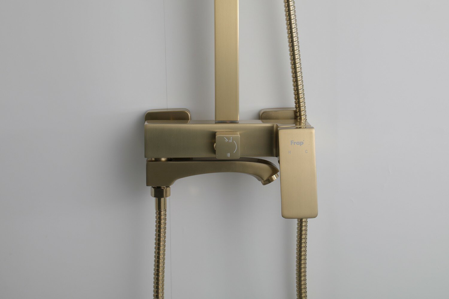 Купить Душевая стойка для ванны FRAP F2476-3 латунь, золотой сатин, управление рычажное