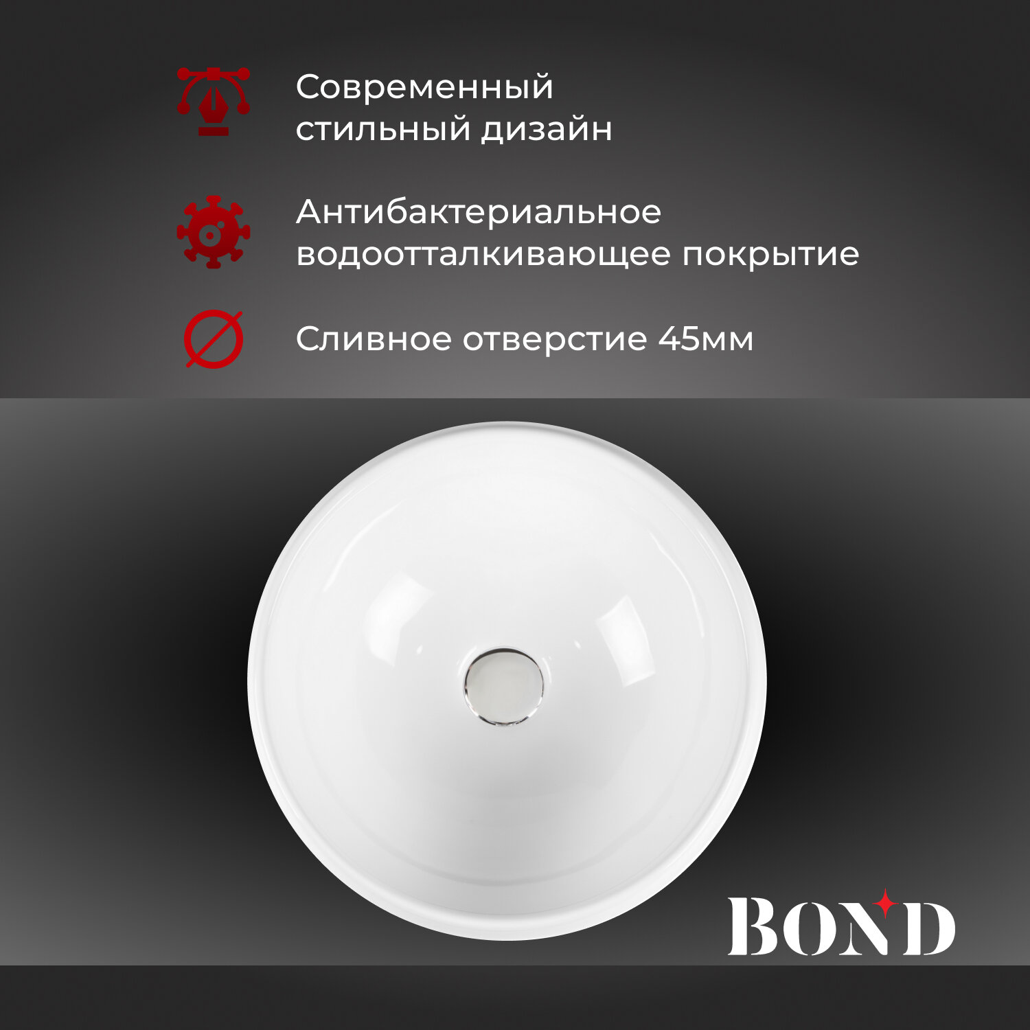 Раковина накладная 39,5*39,5*15,5см BOND Circle S52-390 круглая белая интересное:
