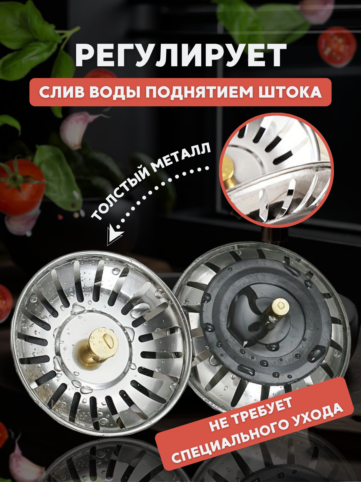 Сетка-фильтр, для раковины, нержавеющая сталь, 70мм, серебристая