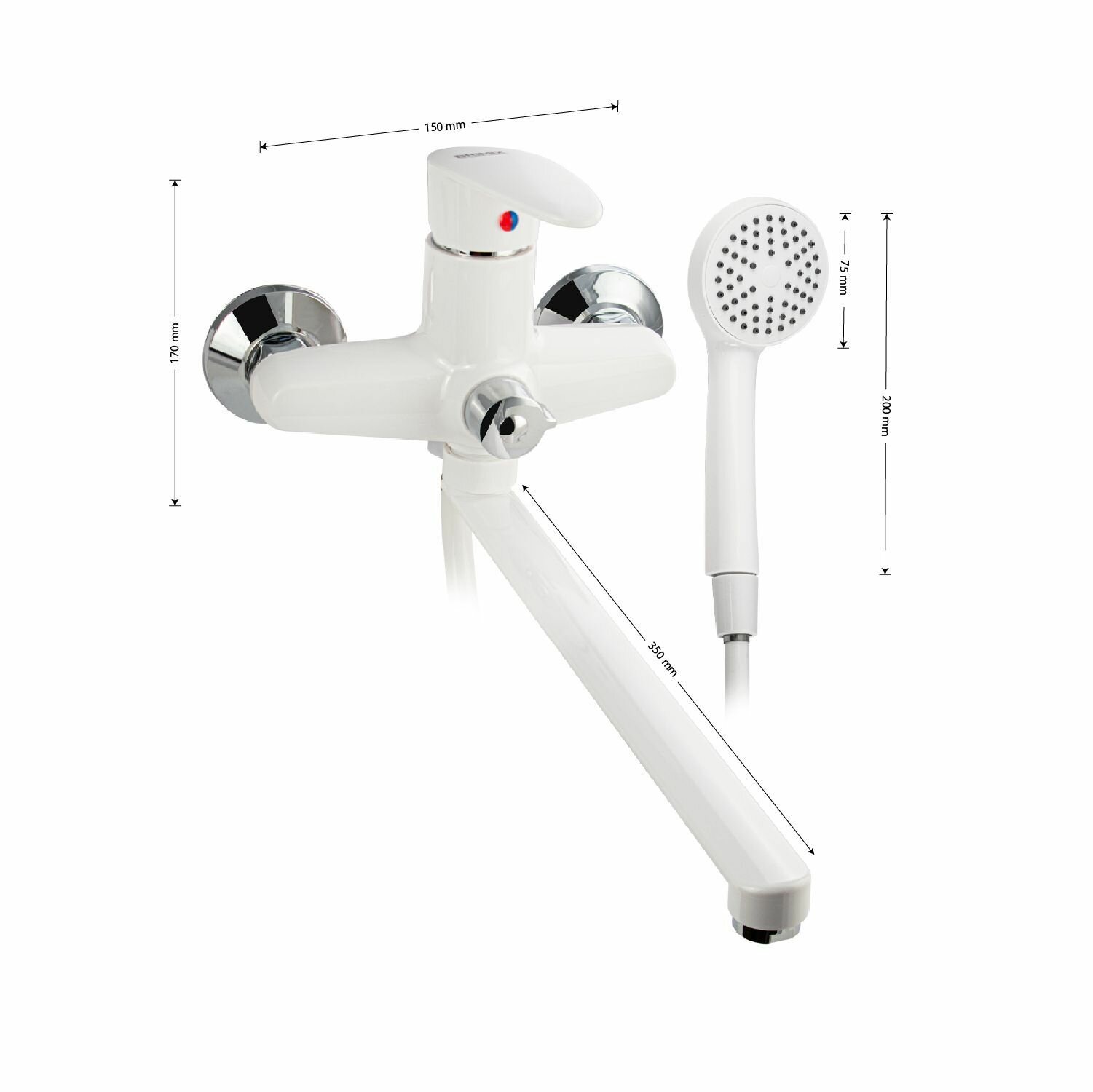 Купить Смеситель в ванную из высокопрочного термостойкого АБС пластика, Plamix CEZAR-006(EURO), лейка+шланг в комплекте