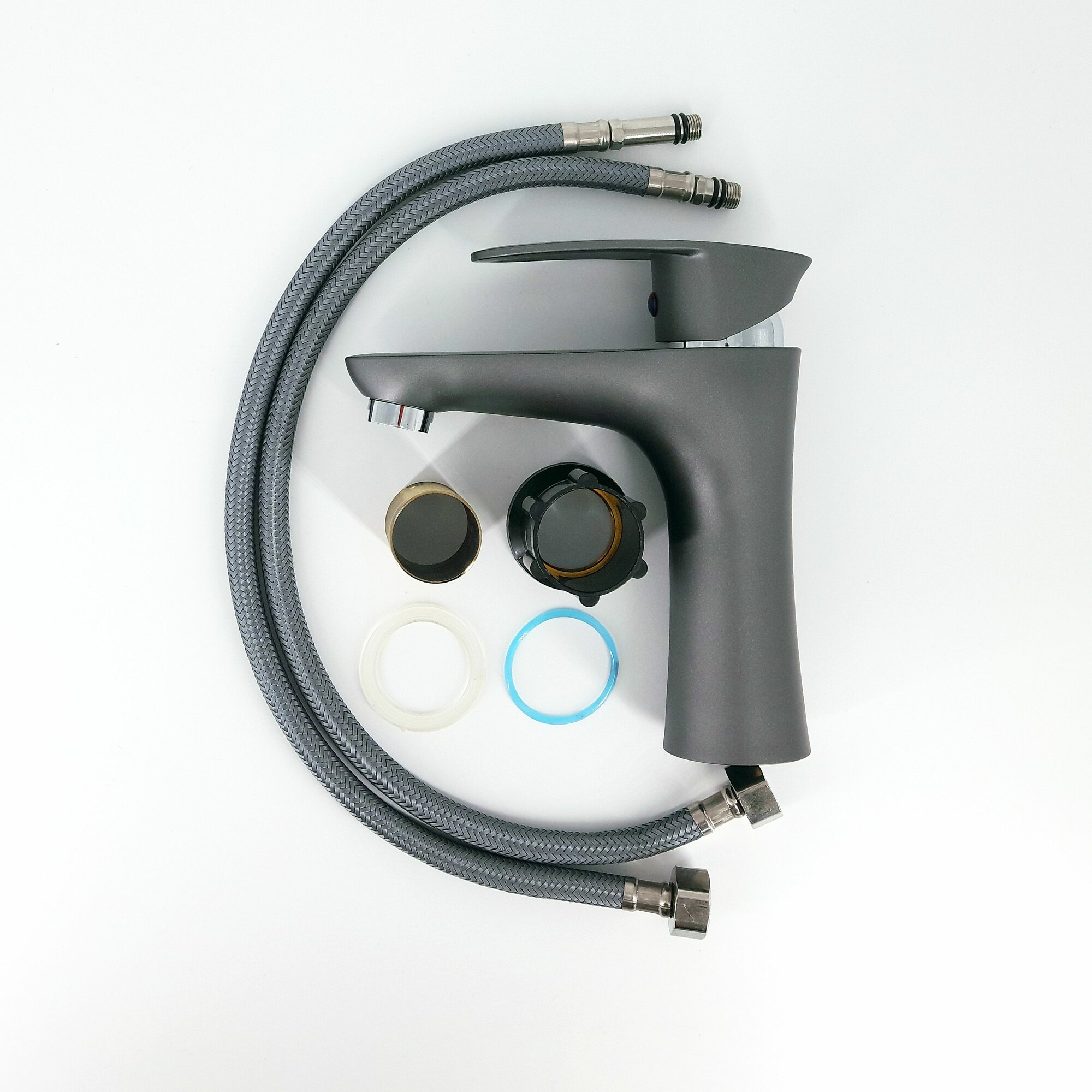 Купить Смеситель в ванную, для раковины, цвет графит из высокопрочного термостойкого АБС пластика, Pllamix 001 Graphite, подводка