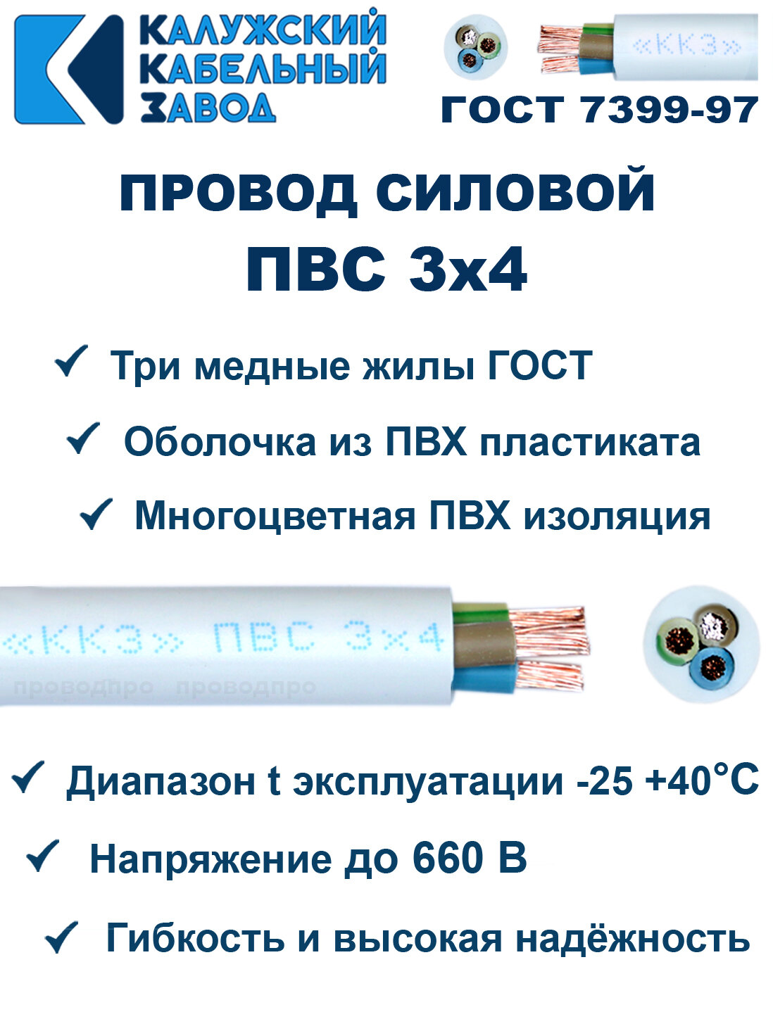 СохранитьПровод ПВС 3х4,0 ГОСТ, 15 метров. Белый. Калужский кабельный завод интересное: