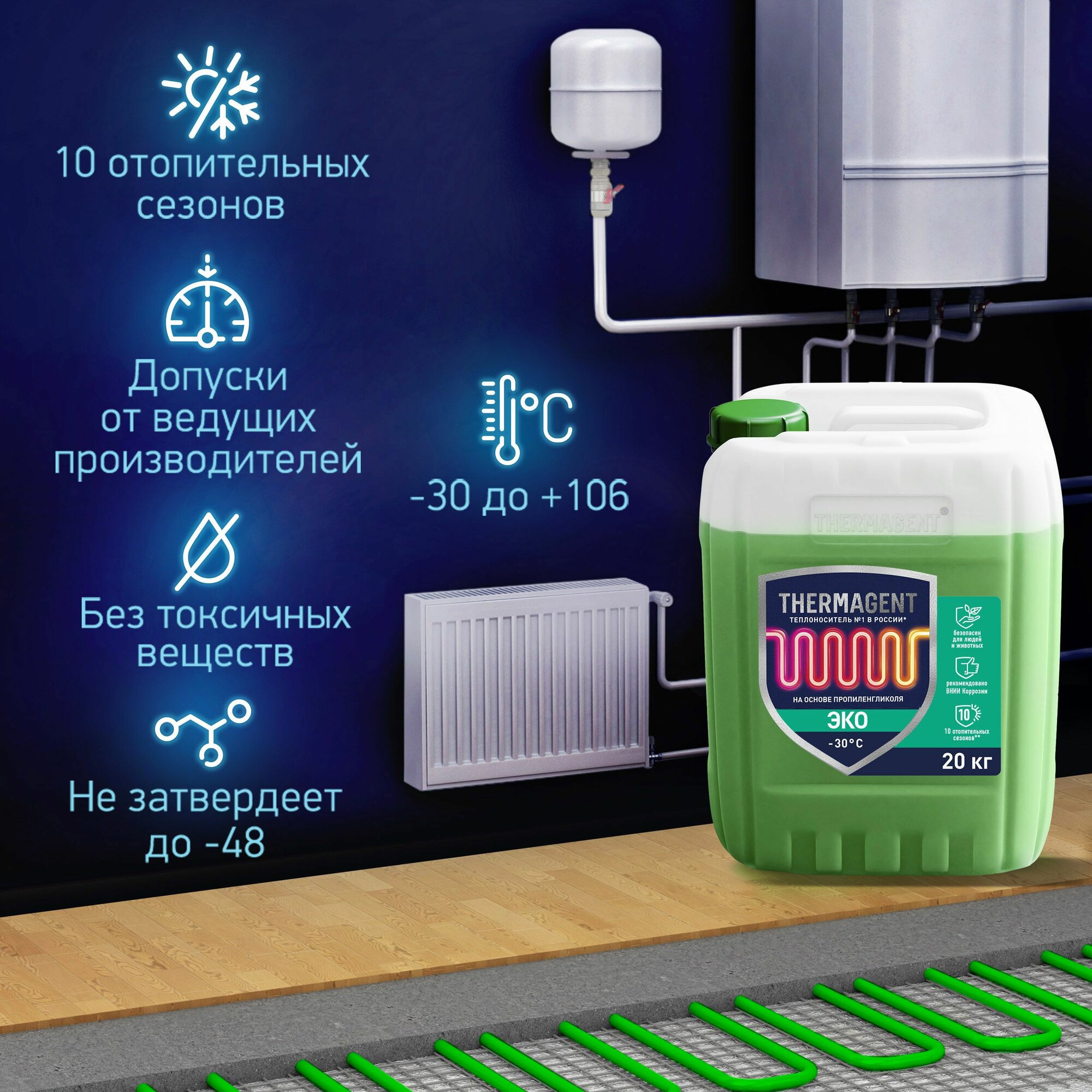 Теплоноситель для системы отопления Thermagent ECO-30, 10 кг
