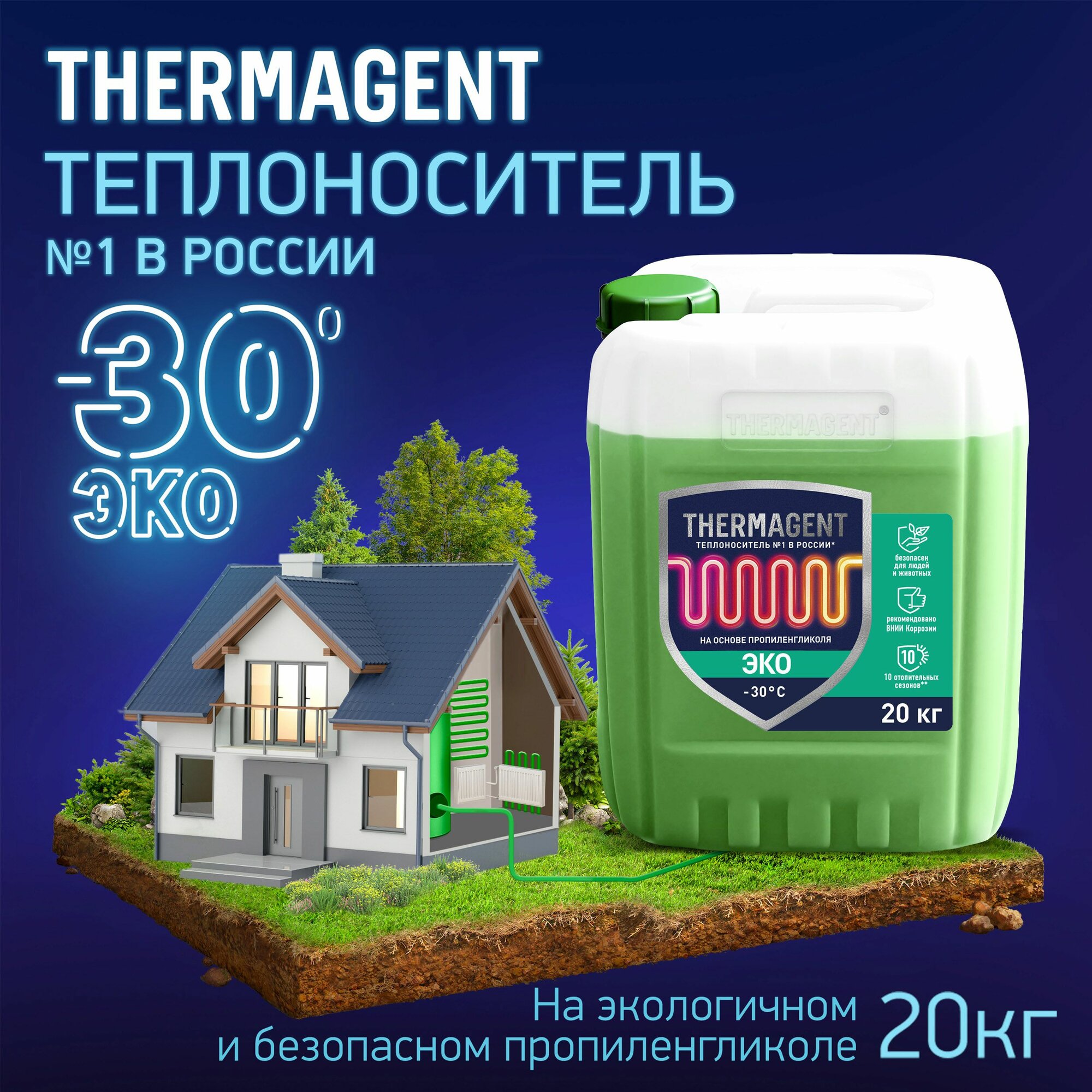 Термагент Эко теплоноситель пропиленгликоль -30С (20кг) / THERMAGENT Eko теплоноситель пропиленгликоль бытовой антифриз для систем отопления -30С (20к