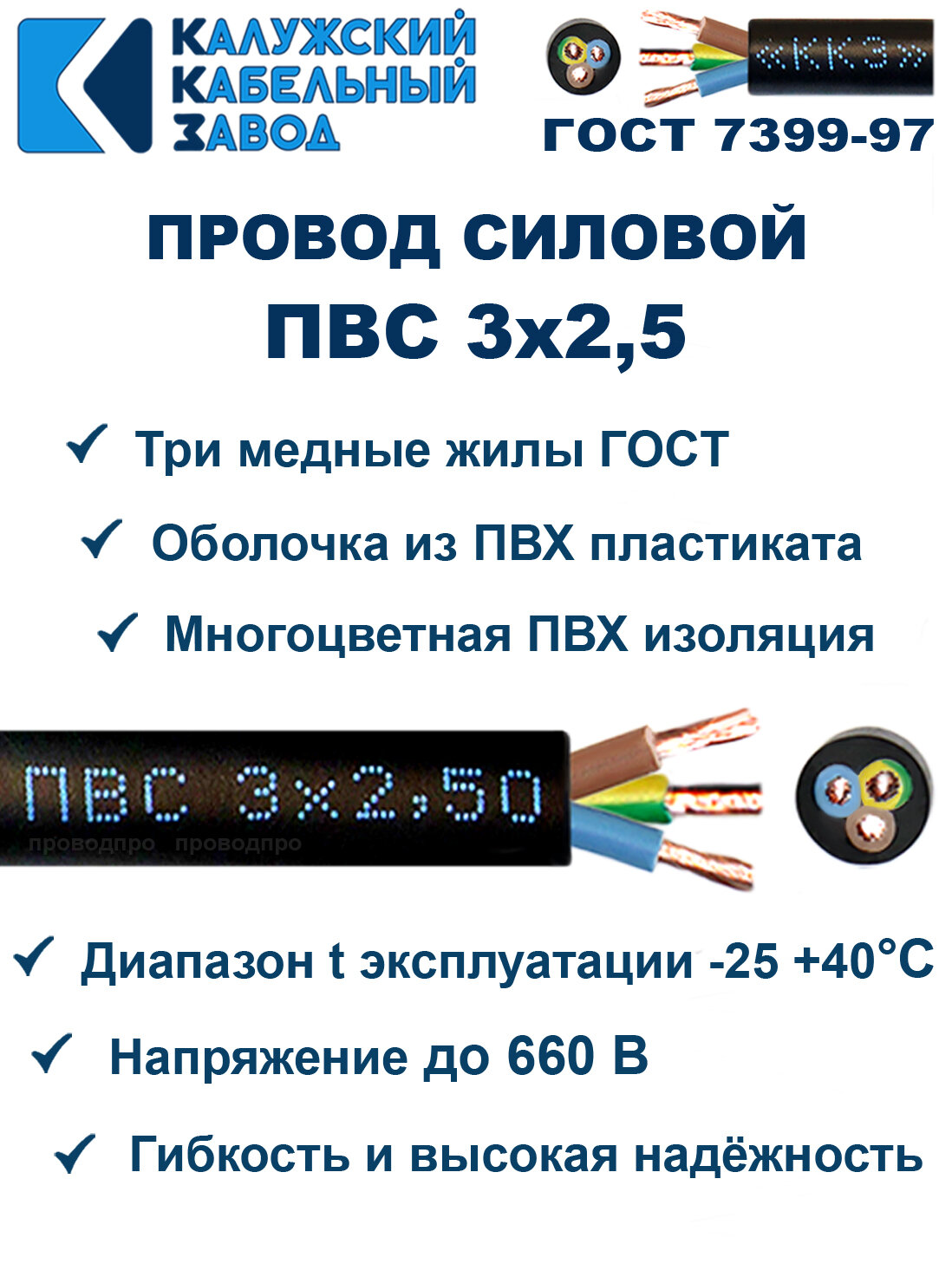 Провод ПВС 3х2.5 5метров ГОСТ Калужский кабельный завод
