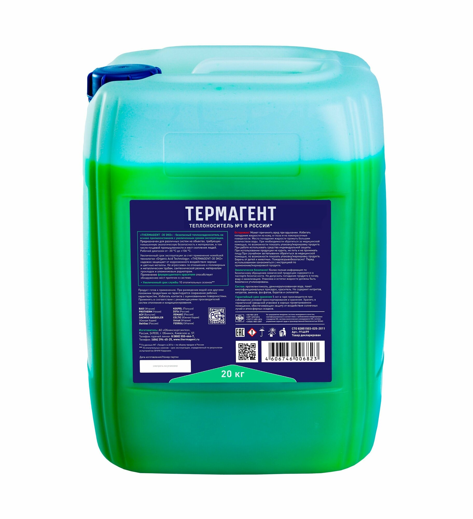 Теплоноситель Обнинскоргсинтез THERMAGENT-30 ЭКО 20кг (Пропиленгликоль)