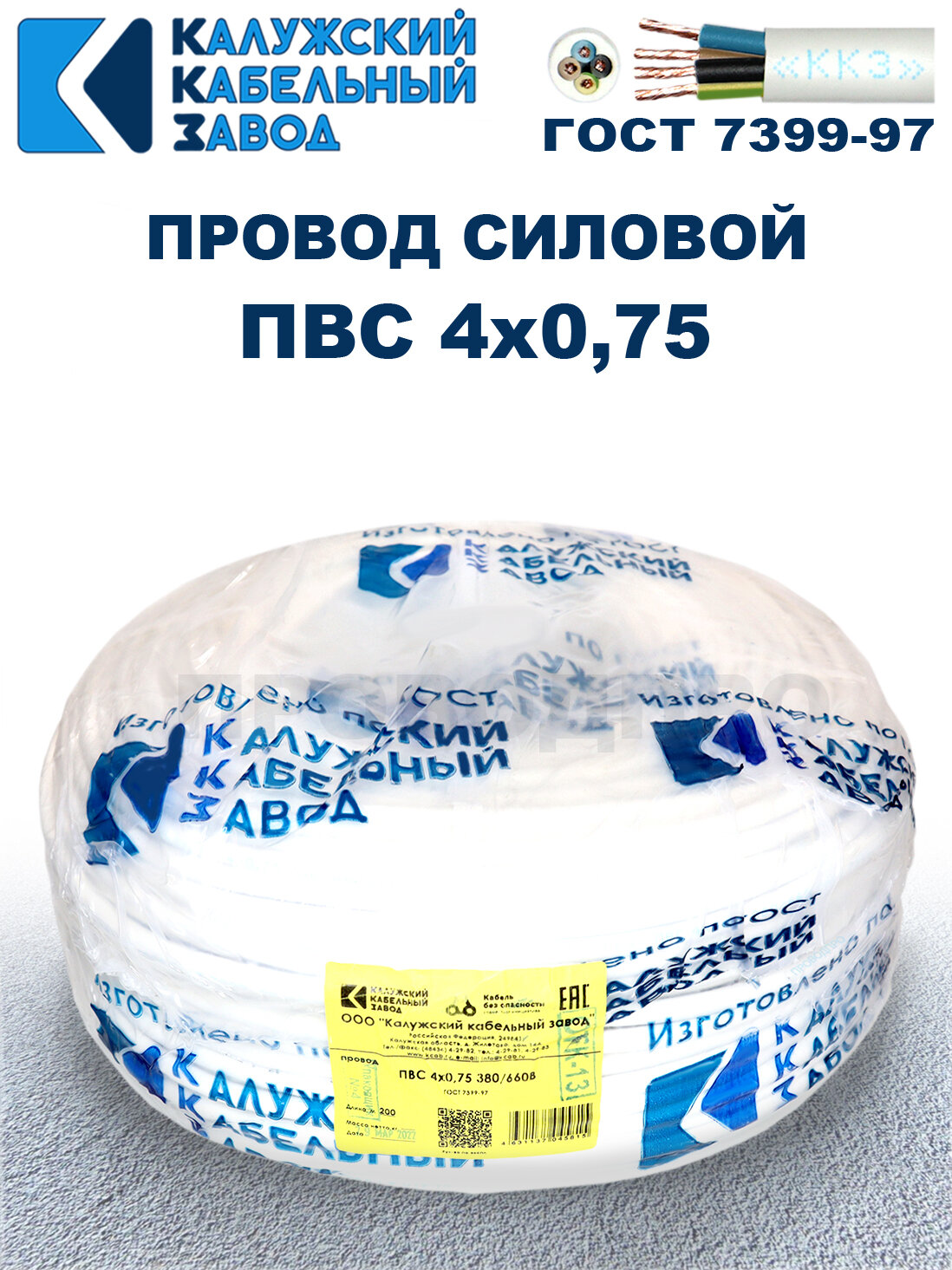 Провод ПВС 4х0,75 20метров ГОСТ Калужский кабельный завод