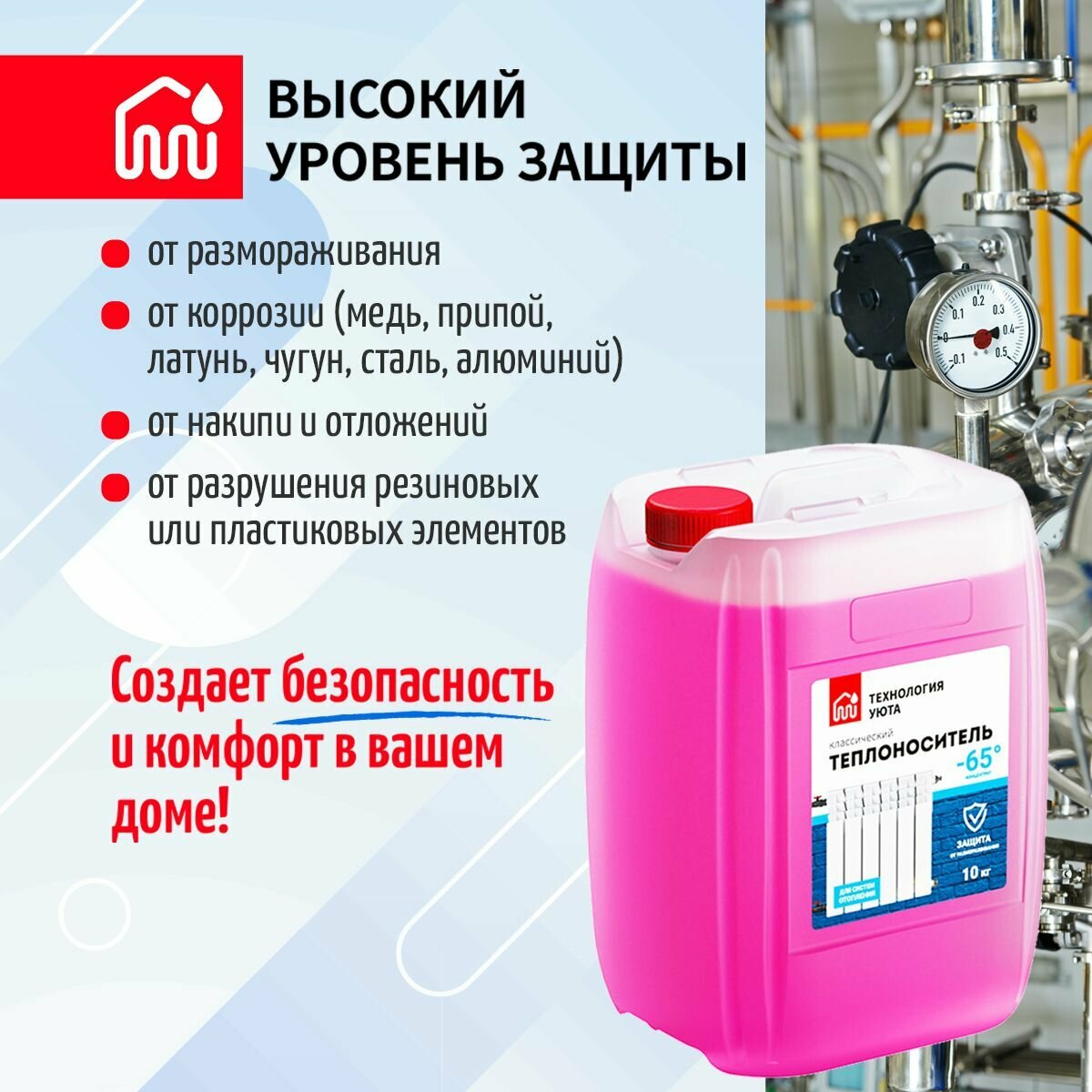 Технология уюта теплоноситель этиленгликоль -65С (10кг) / технология уюта теплоноситель этиленгликоль бытовой антифриз для систем отопления -65С (10кг