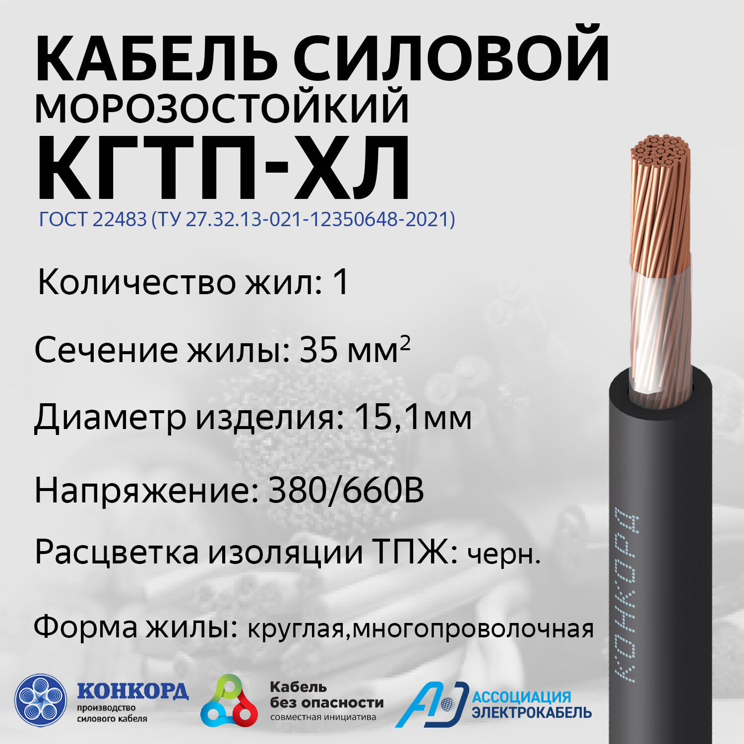 Купить Сварочный кабель КГтп-ХЛ 35кв. мм 3 метра ГОСТ Конкорд