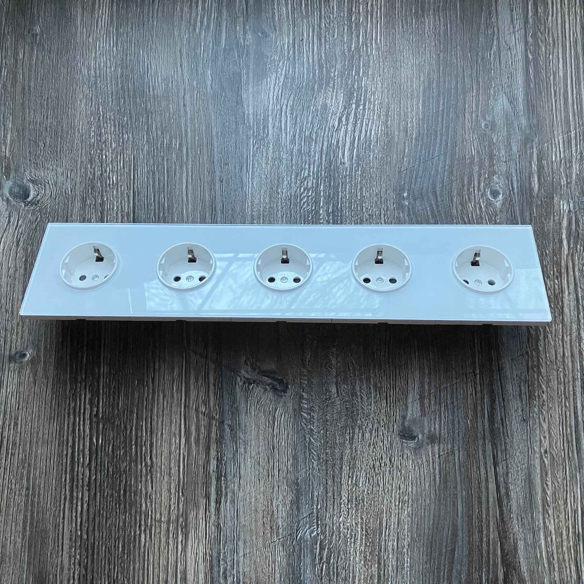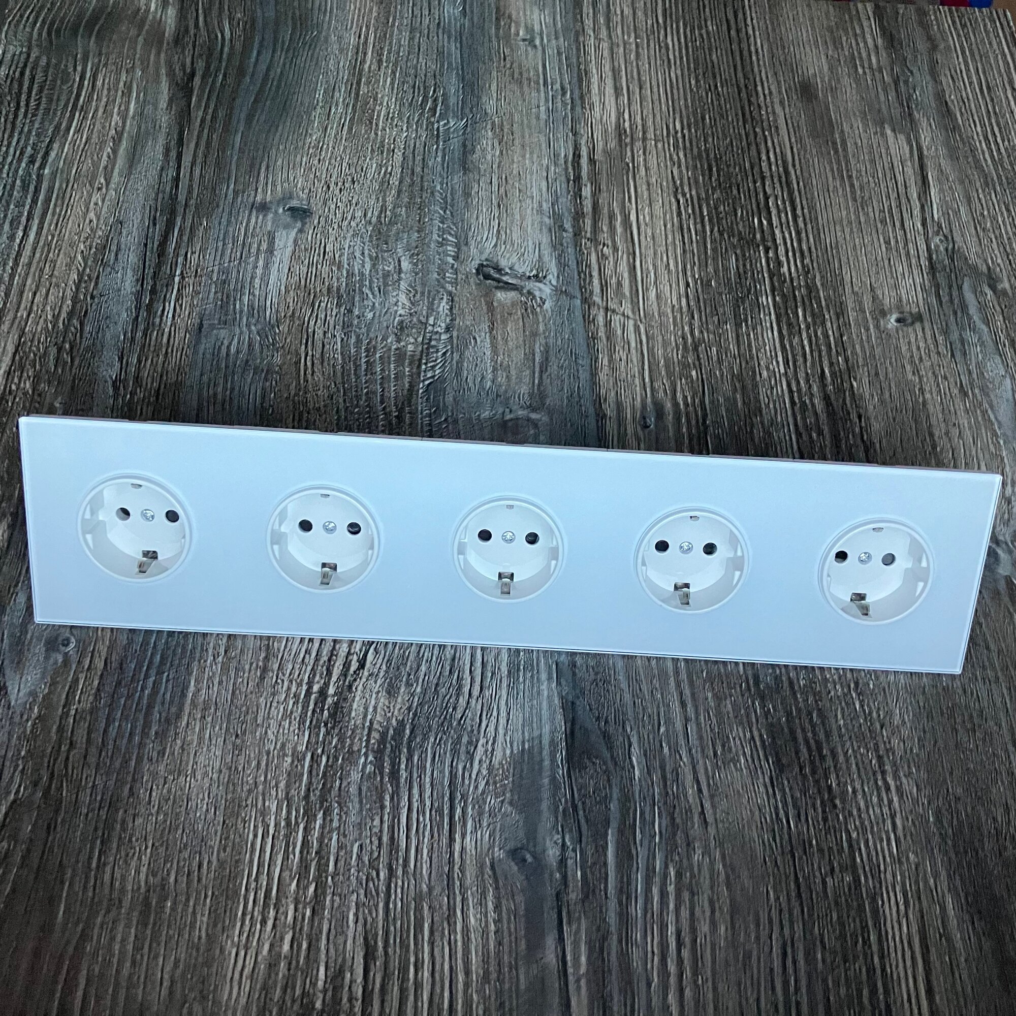 Купить Розетка электрическая 5 постов 16А, рамка 366*82*8mm. рамка стекло сплошное, цвет белый. F8