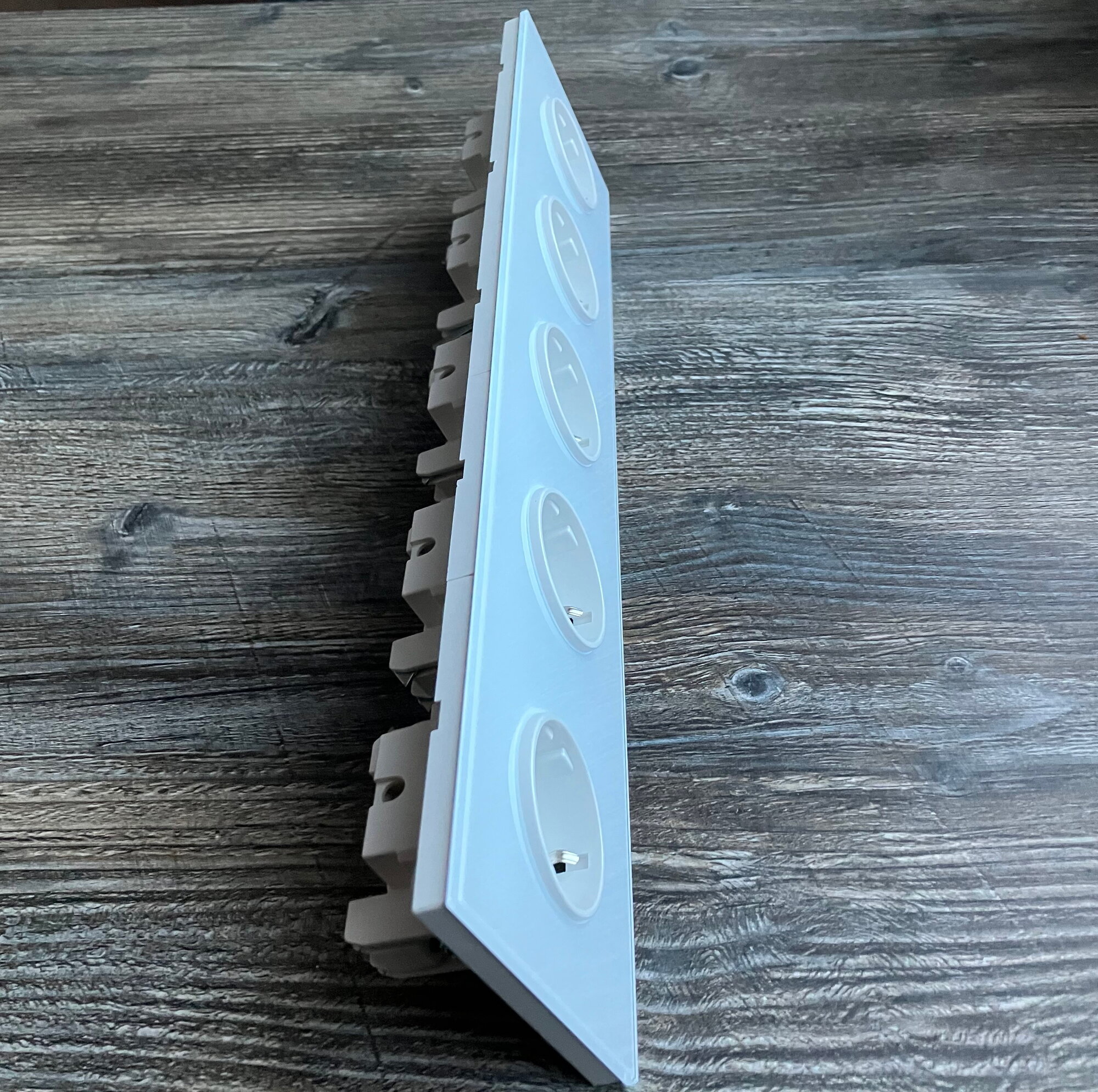 Розетка электрическая 4 поста 16А, рамка 295*82*8mm. рамка стекло сплошное, цвет белый. F8