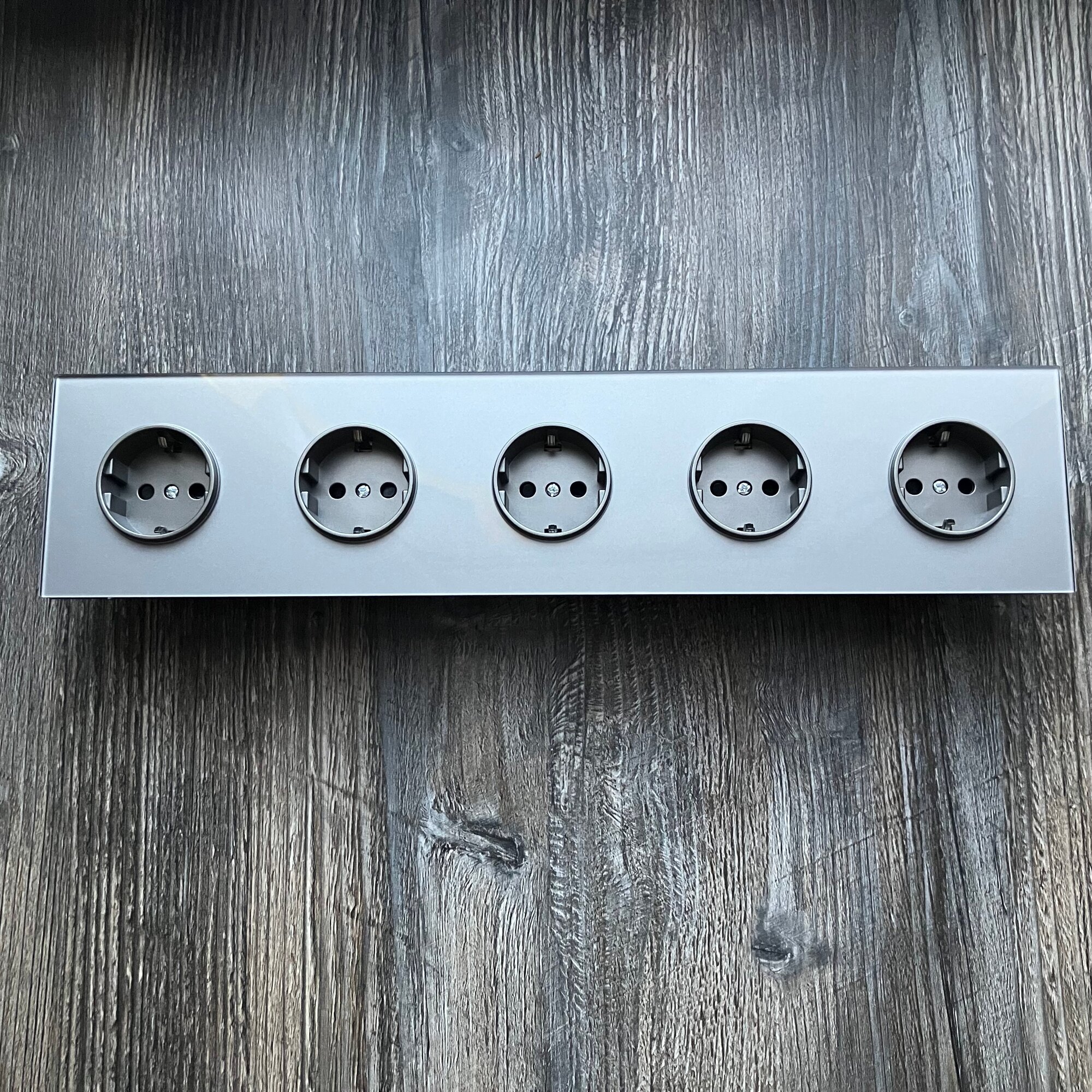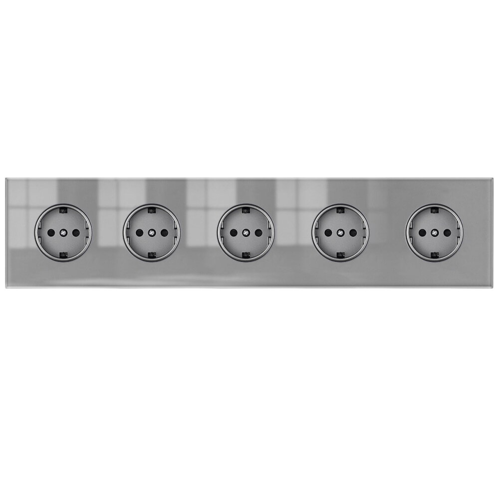 Купить Розетка электрическая 5 постов 16А, рамка 366*82*8mm. рамка стекло сплошное, цвет серый. F8