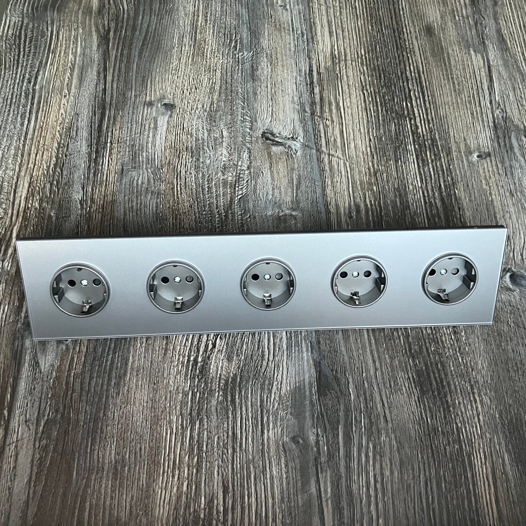 Розетка электрическая 5 постов 16А, рамка 366*82*35mm. рамка стекло сплошное, цвет серый. F8