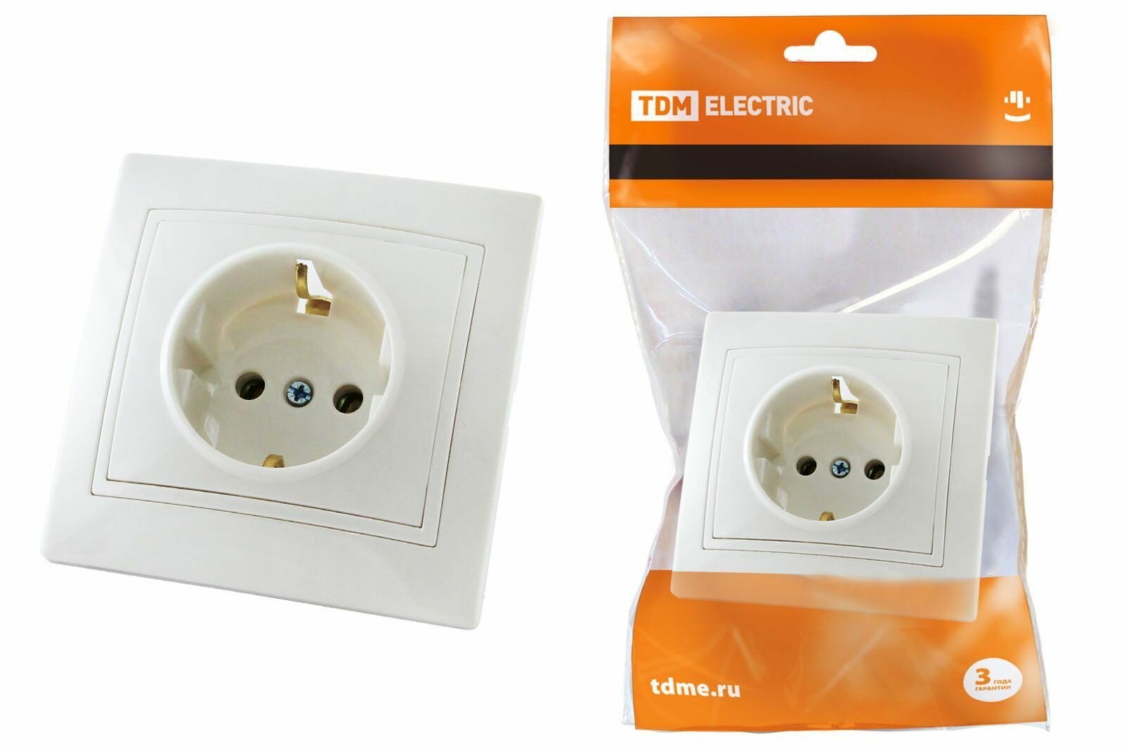 Купить Розетка 2П+З 16А 250В белая "Таймыр" (пром. упак, бакелит. основание) TDM