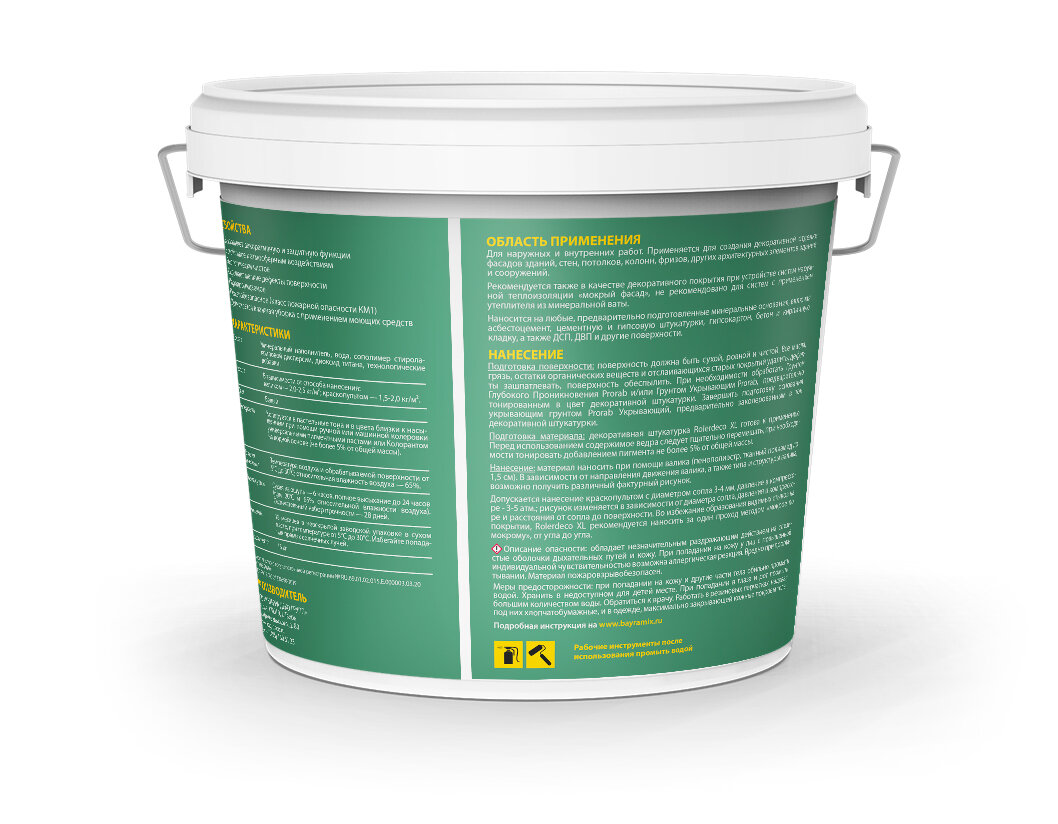 Декоративная Штукатурка Крупная Шуба Prorab Rolerdeco XL 15кг Белая, Колеруемая для Внутренних и Наружных Работ / Прораб.
