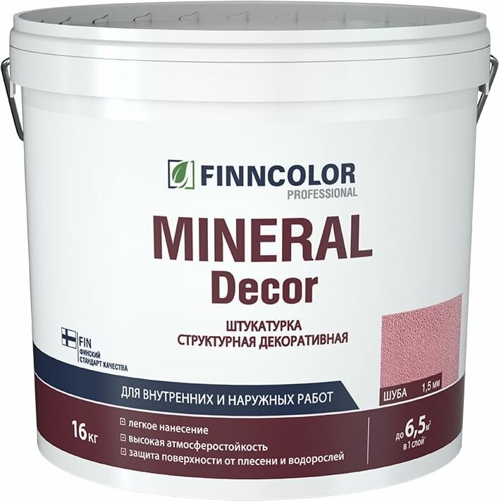 FINNCOLOR MINERAL DECOR штукатурка декоративная, структурная, шуба фракция 1,5 мм (16кг)