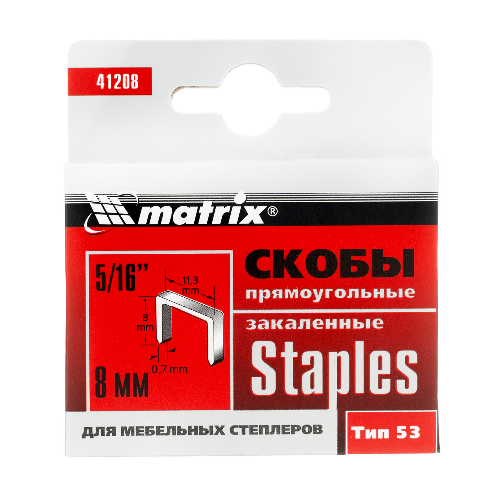 Скобы Matrix 8 мм, для мебельного степлера, закаленные, тип 53, 1000 шт 41208