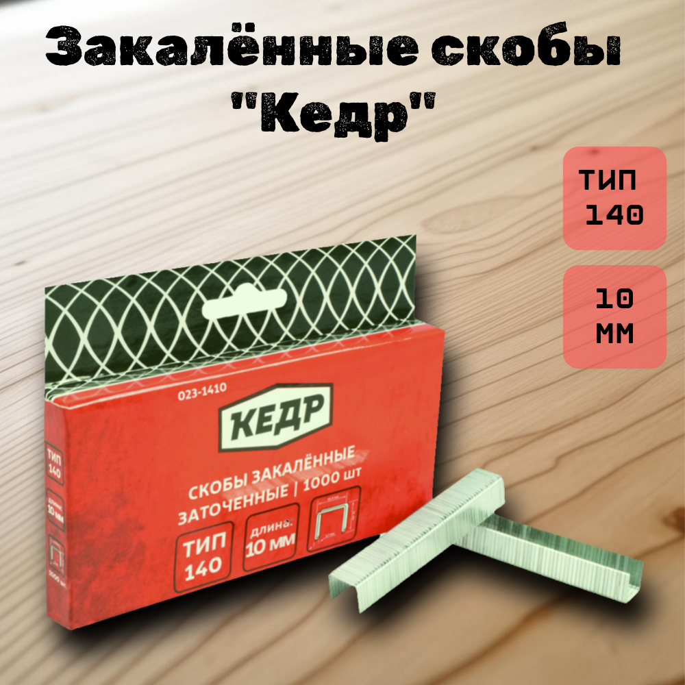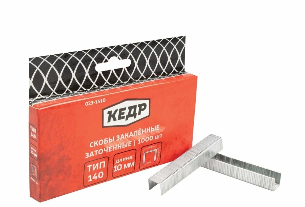Купить Скобы закалённые КЕДР тип 140, толщина 1.2мм, длинна 10 мм, 1000 шт