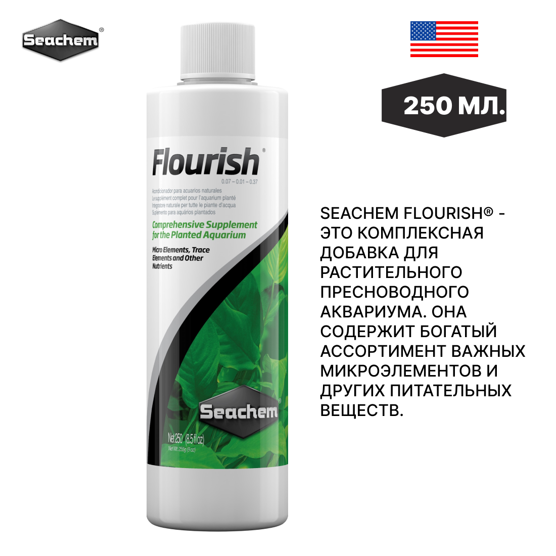 Добавка микроэлементов Seachem Flourish, 250 мл