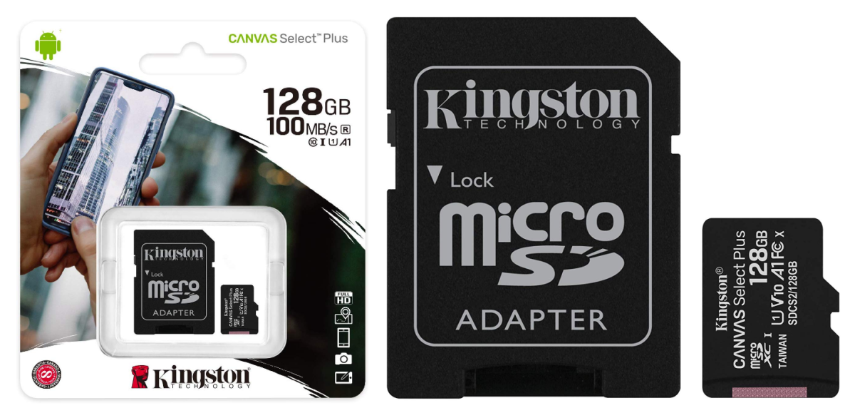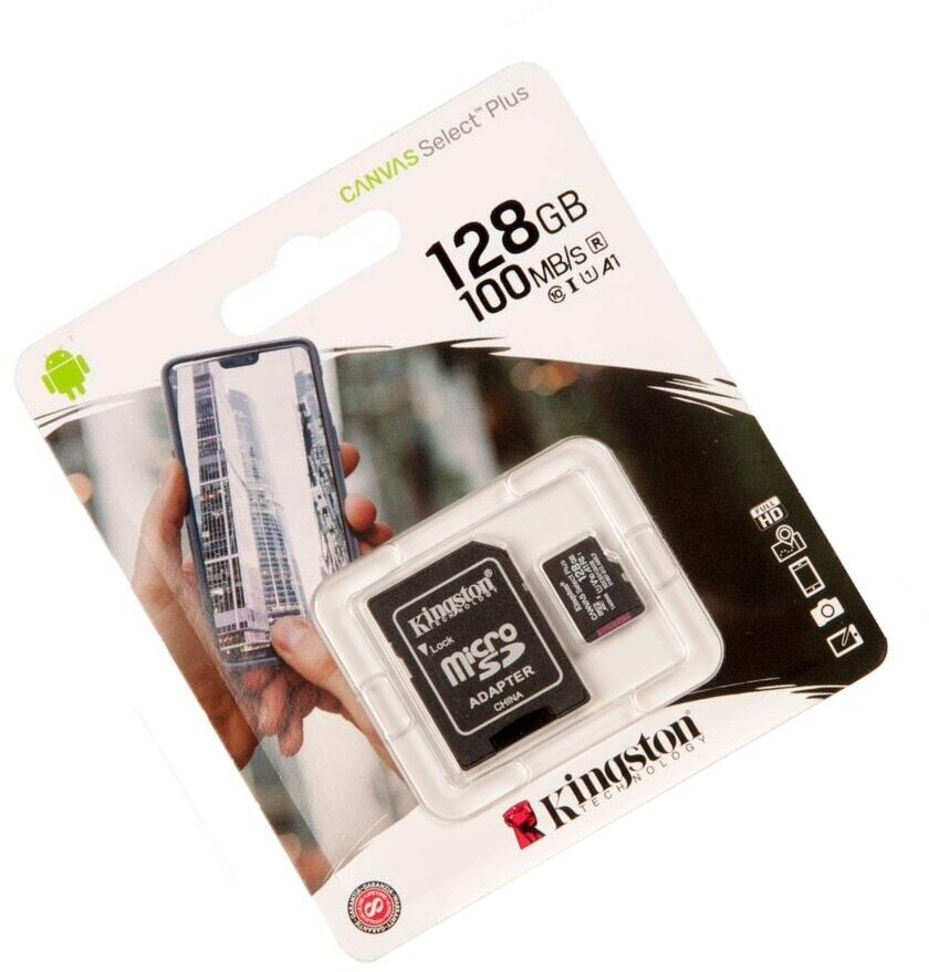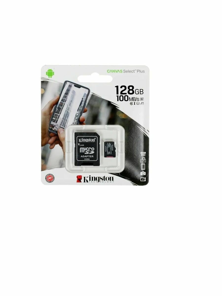 Карта памяти microSDXC Kingston 128 Гб класс 10 UHS-I U1 Canvas Select PLUS A1 - с адаптером SD