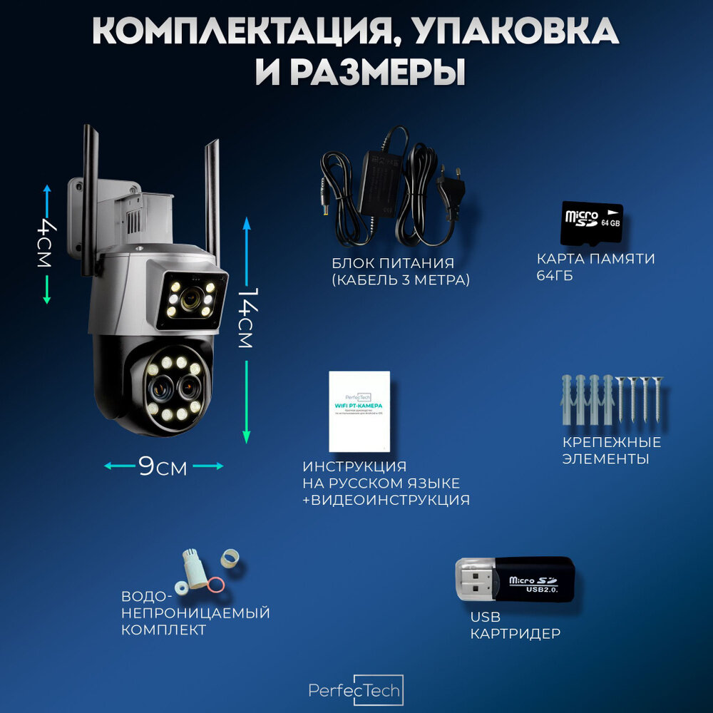 Камера видеонаблюдения уличная wi-fi двойная с зумом х8, картой 64ГБ + 3м кабелем интересное: