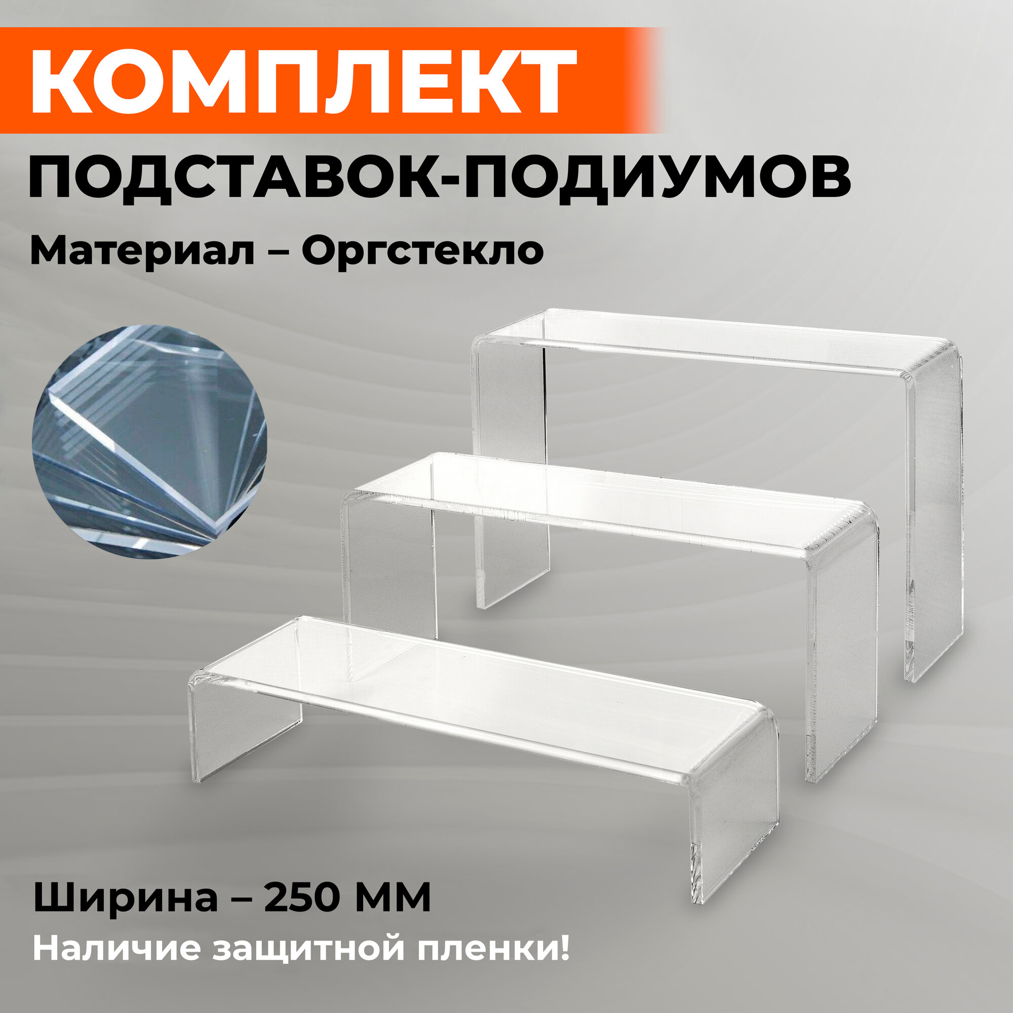 Купить Подставки-подиумы П-образные для демонстрации товара, ширина 250 мм, толщина 5 мм, комплект 3 штуки