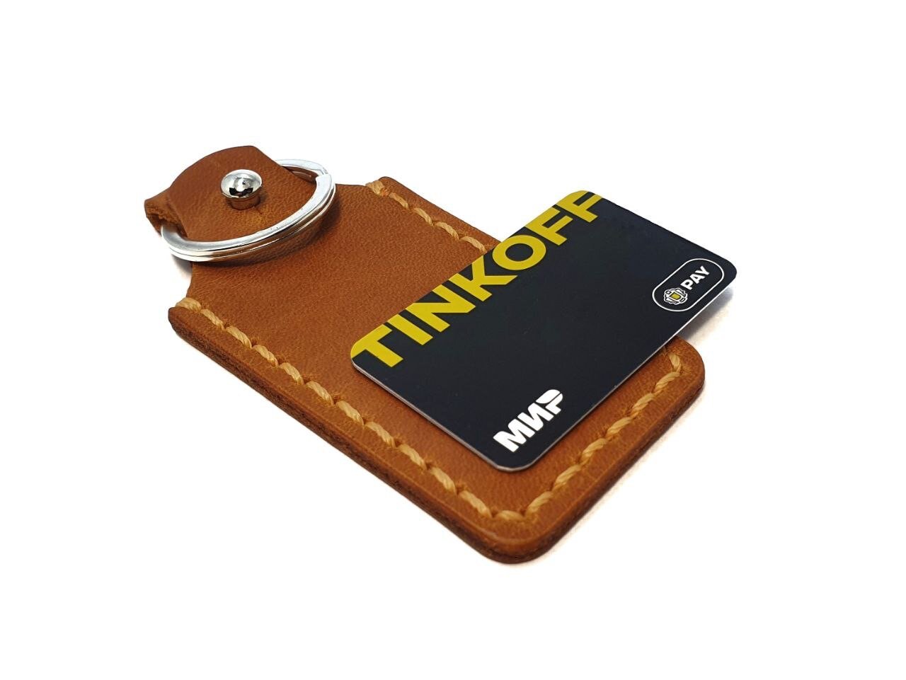 Чехол-брелок Коричневый из нат. кожи КрейзиХорс для ключей ПИК,Тройка,Стрелка,домру, метки Starline, для стикеров Тинькофф, Альфа, Сбер и др.