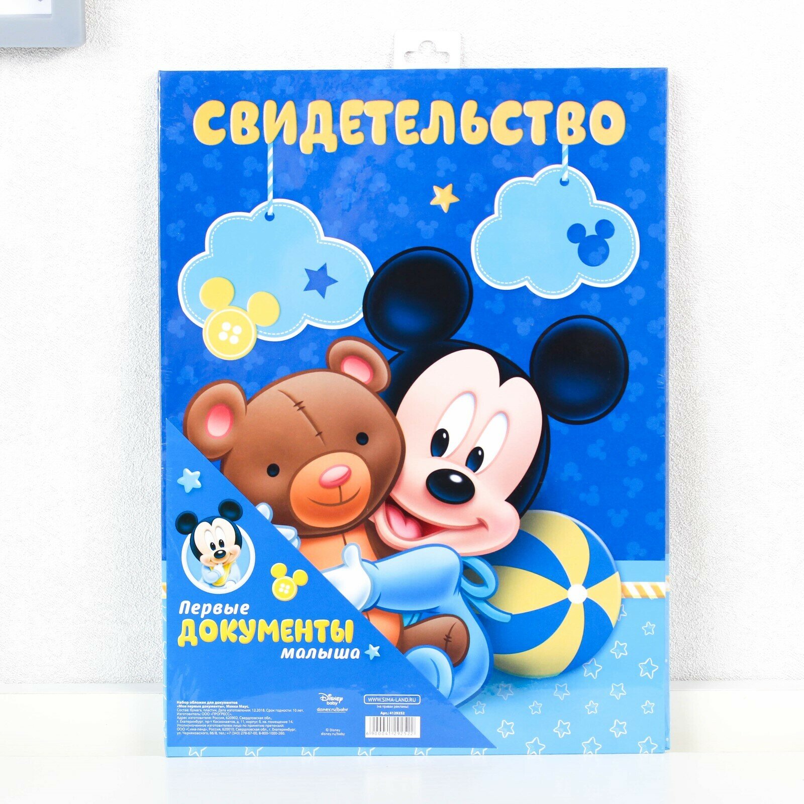 Обложка для свидетельства о рождении и на полис Disney Микки Маус "Мои первые документы", формат А4, для мальчика