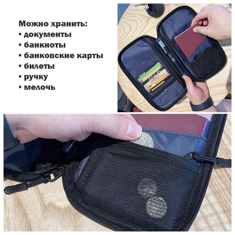 Дорожный кошелек с RFID-защитой / дорожный органайзер для документов, черный